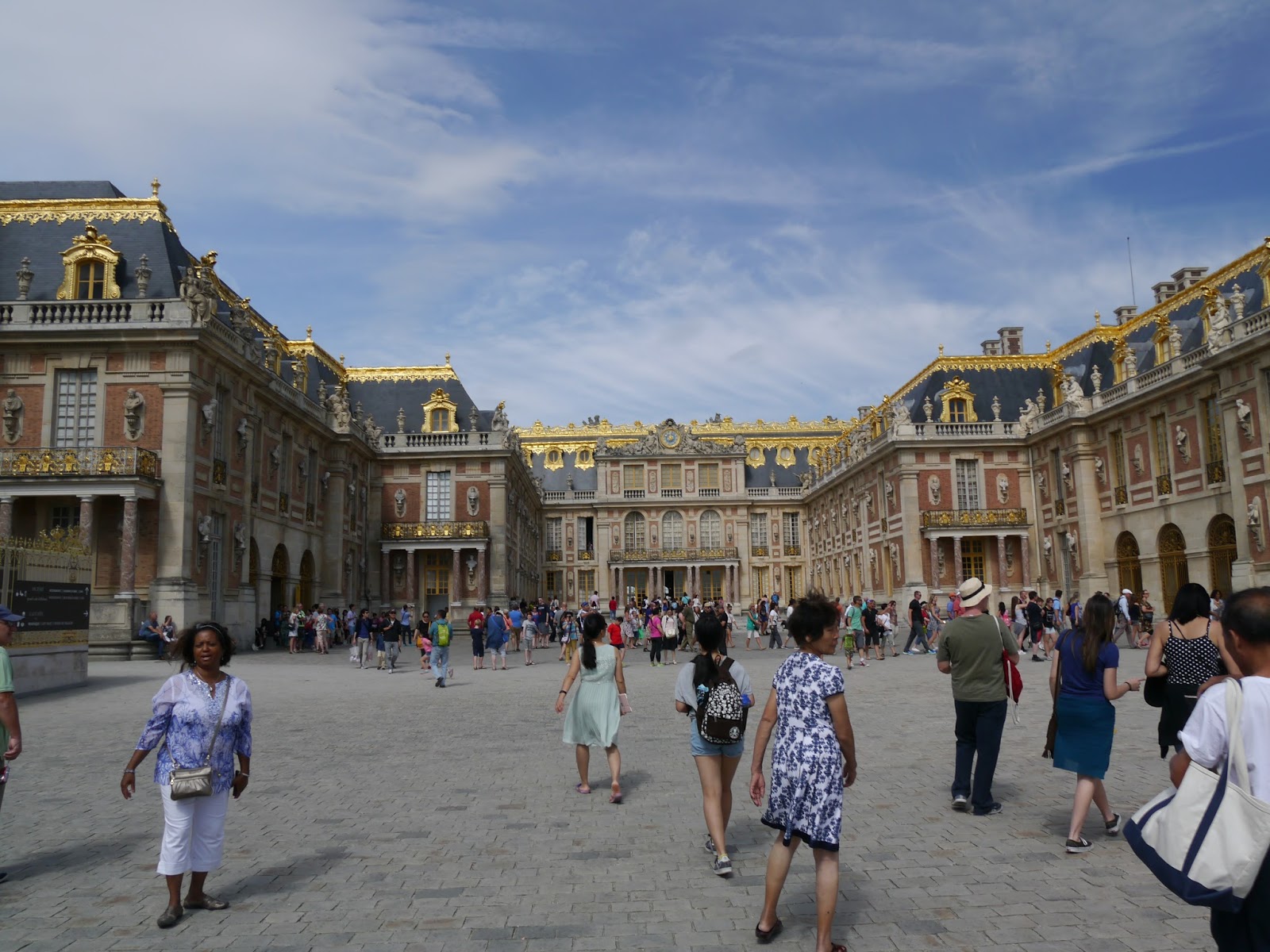 門口有路易十四騎馬像。凡爾賽宮原本是路易十三開始興建的狩獵行宮,但在路易十四的手上完成目前宏大的規模,從1682年到1789年期間,可以說是法國舊君主體制的政治中心,但卻越來越遠離民心,最終引發法國大革命。
